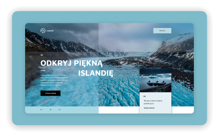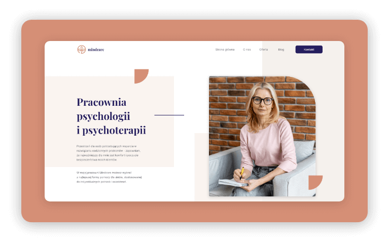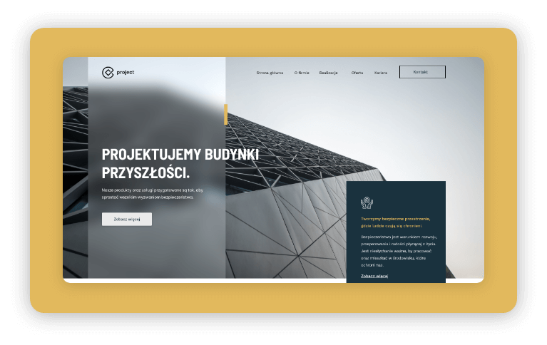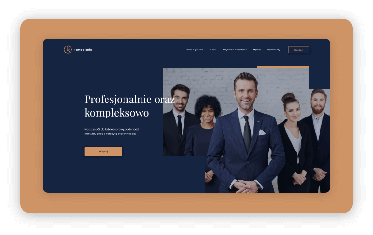 Atrakcyjny design oraz sekcje dopasowane pod prezentację misji Twojej jednoosobowej działalności.