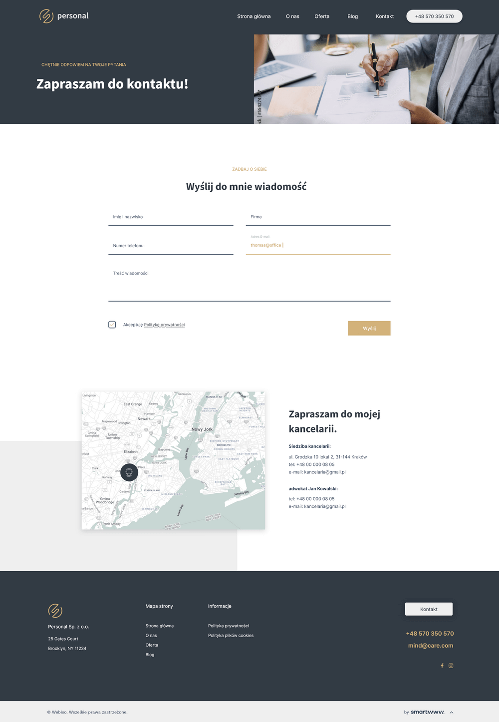Wszystkie elementy i treści na Twojej stronie mają jeden cel – przekonanie odbiorcy do nawiązania z Tobą kontaktu. Podstrona Kontakt mu to umożliwi.