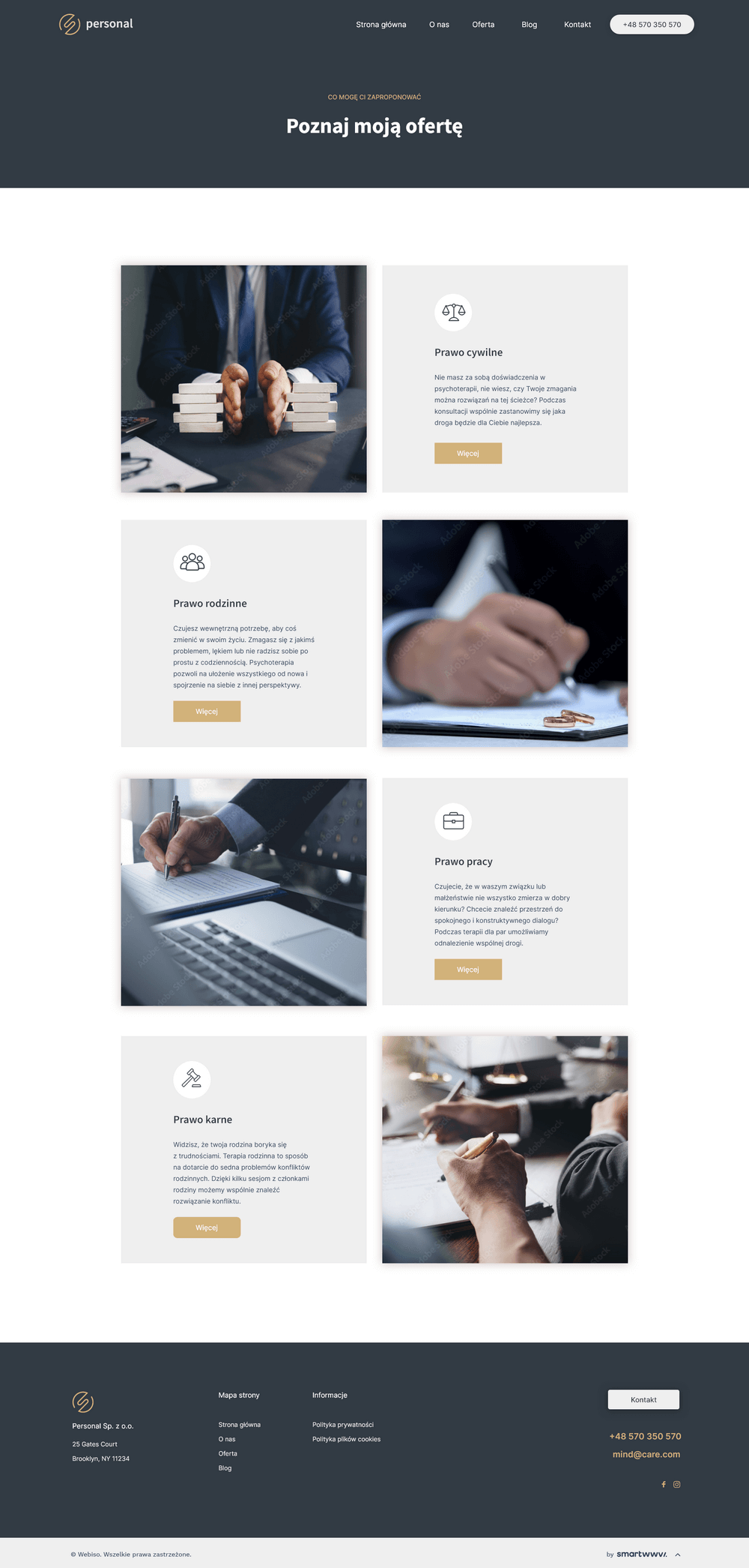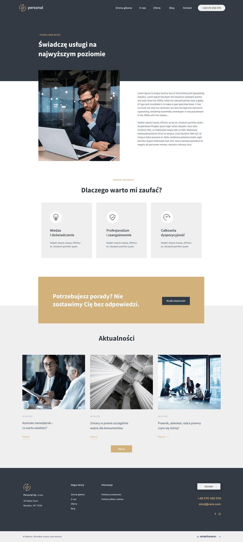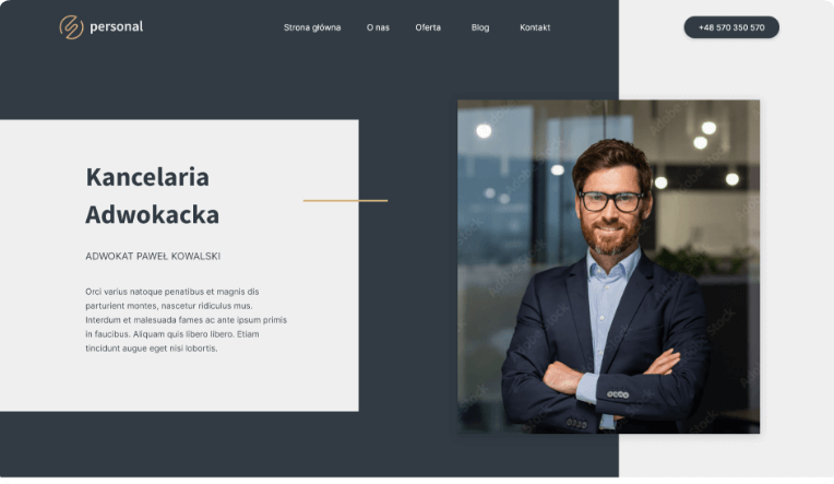 Na podstronie O nas Twój wizerunek, wiedza i doświadczenie znajdą przestrzeń na zaprezentowanie się w pełni.
