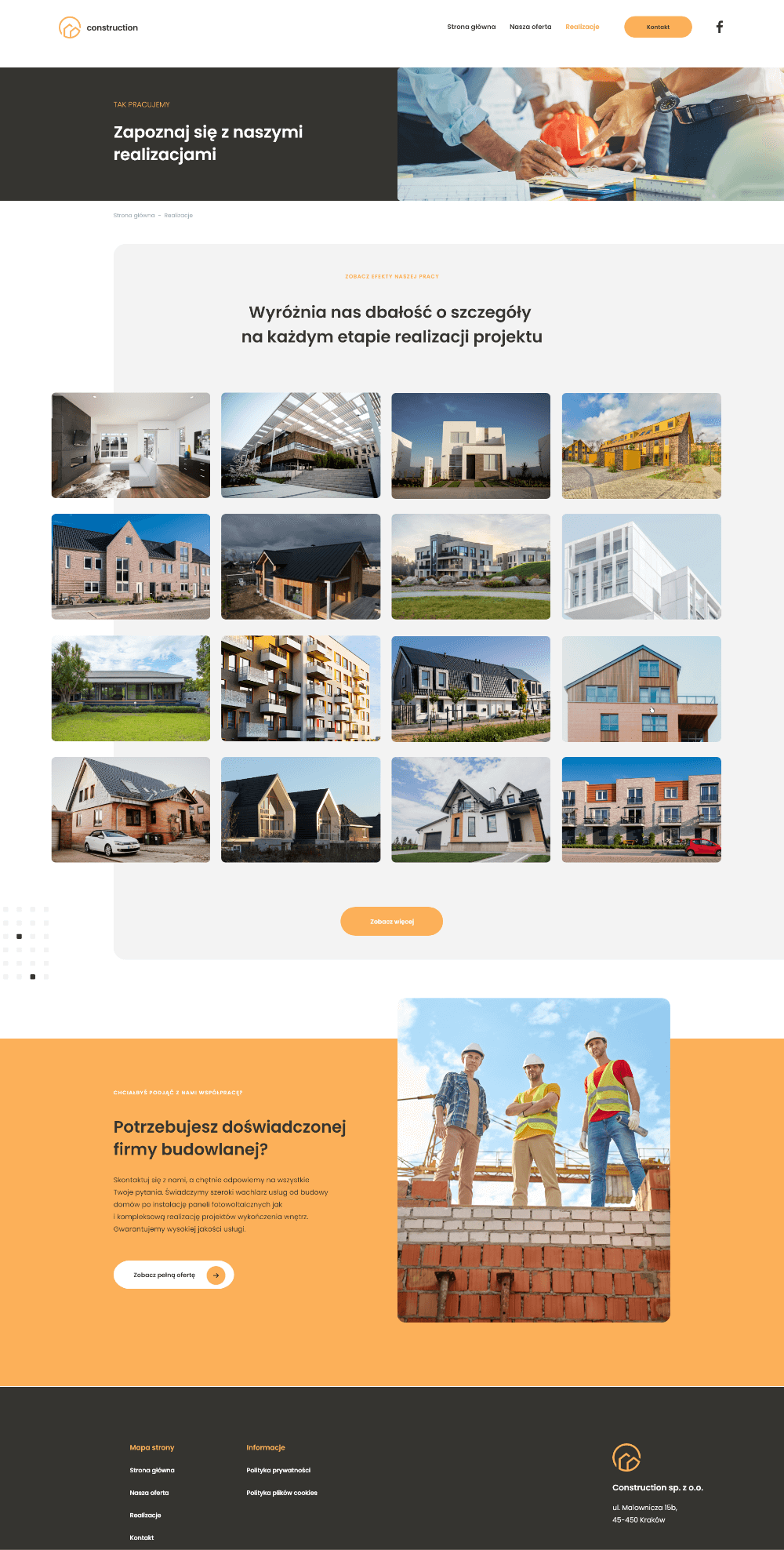 Użytkownik, podejmując decyzję o powierzeniu Ci swojego zlecenia, chce mieć pewność, że wybiera najlepszego specjalistę na rynku. Dlatego tak istotne jest, abyś świadomie kreował swój wizerunek eksperta i znawcy w swojej dziedzinie. W tym bez wątpienia pomoże Ci firmowy blog na Twojej stronie www. Podstrona blogowa na motywie Construction pozwoli Ci w przejrzysty sposób zaprezentować swoje wpisy blogowe. Możesz dzielić wpisy na kategorie, a w obrębie danego artykułu dodawać zdjęcia, a także dzielić się nim w swoich mediach społecznościowych.